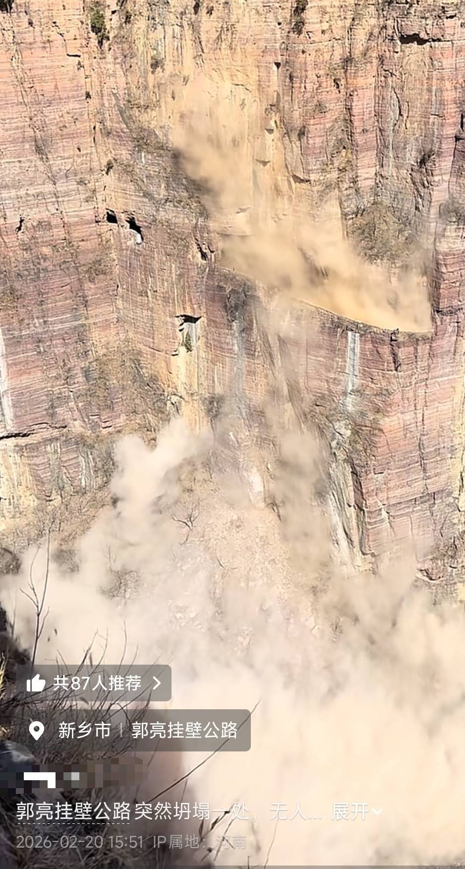 涨8配资 河南新乡郭亮挂壁公路现塌方落石,大量烟尘弥漫,景区:已清理完毕恢复通行,无人员伤亡